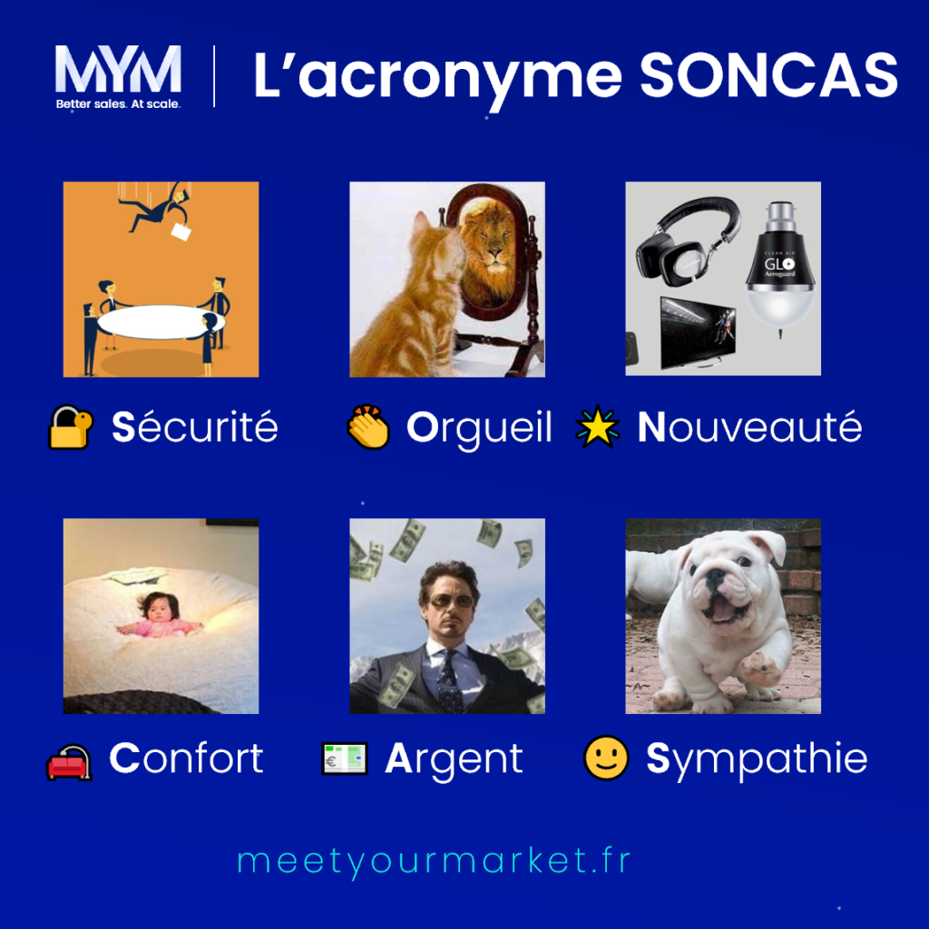 Pourquoi ? Parce que la méthode SONCAS permet de comprendre ce qui motive vraiment votre interlocuteur et ainsi adapter votre discours pour lui parler de ce qui l'intéresse.