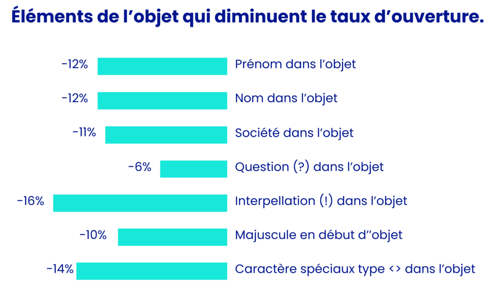 En effet, il y a un lien entre le fond de l’objet, et le contenu de l’email. Si la promesse de l’objet est trompeuse (volontairement ou non) vous risquez de créer un sentiment de déception/voire de tromperie, et même si vos emails sont très ouverts, vous obtiendrez un taux de réponses très faible et votre taux de réponses positives pour un RDV va s’effondrer !
